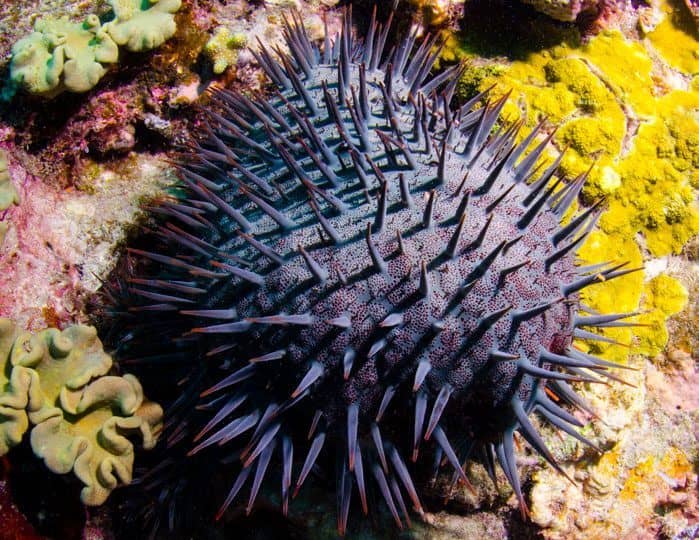 CoTs have few natural predators; Giant Triton Snails, the Humphead Wrasse, Starry Pufferfish and Titan Trigger Fish, which are unable to keep population blooms in check. Scientists inject CoTs with a lethal injection of bile salts (sodium cholate and sodium deoxycholate). They continue to research other techniques that will have a greater impact and be more time efficient, including replicating the chemical released by the Giant Triton Snail, which induces terror and dispersal in this thorny predator.