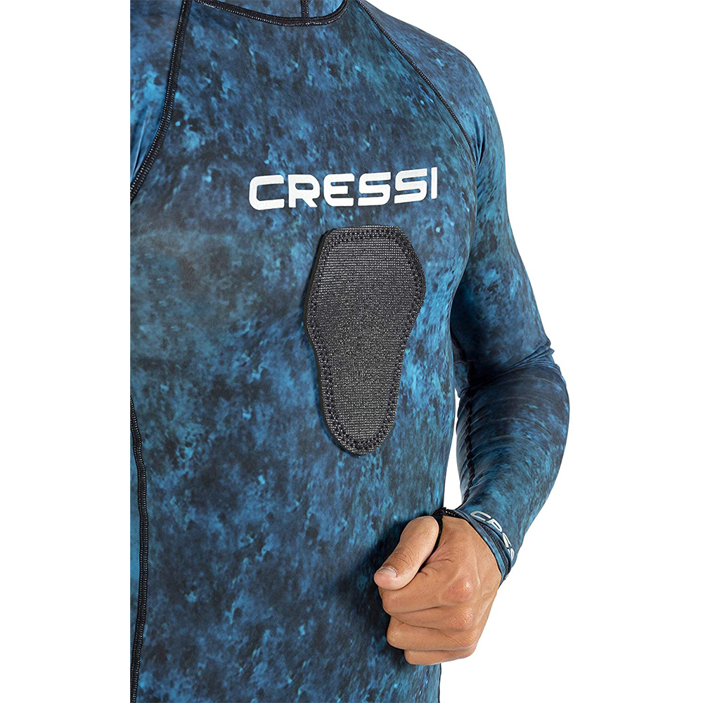 The Hunter rash top / skin top was designed in Australia with our beautiful oceans in mind. The unique blue/green camo is adaptable to all the stunning blues and greens of the water. The camo is designed to break your silhouette in the ocean, making you able to immerse yourself in the ocean life surrounding you. Perfect for the stealth spearfisher or the enchanted diver/snorkeller.